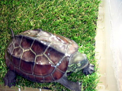 飼育は2012年秋からで当時推定3~4歳現在8~9歳、毎年冬眠、甲長約13cm、腹甲の中央付近に窪み有、総排泄口は甲羅からはみ出しており